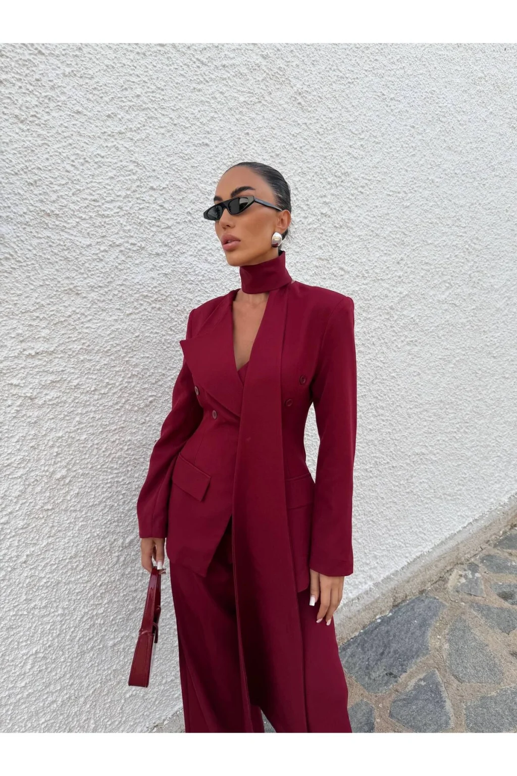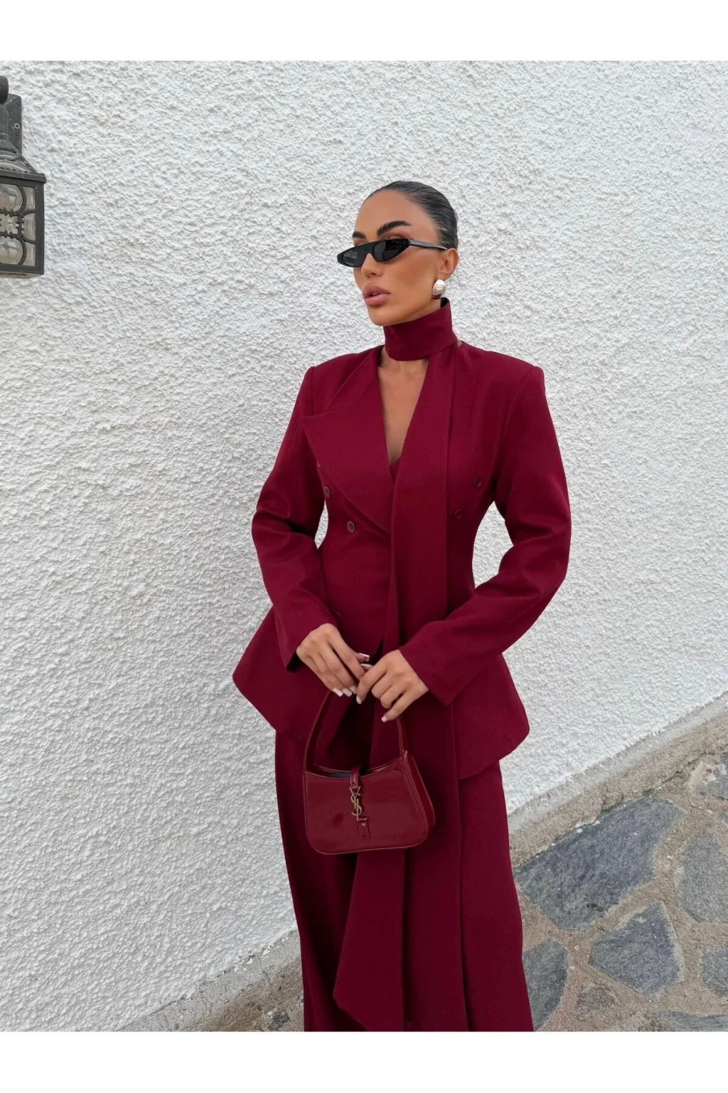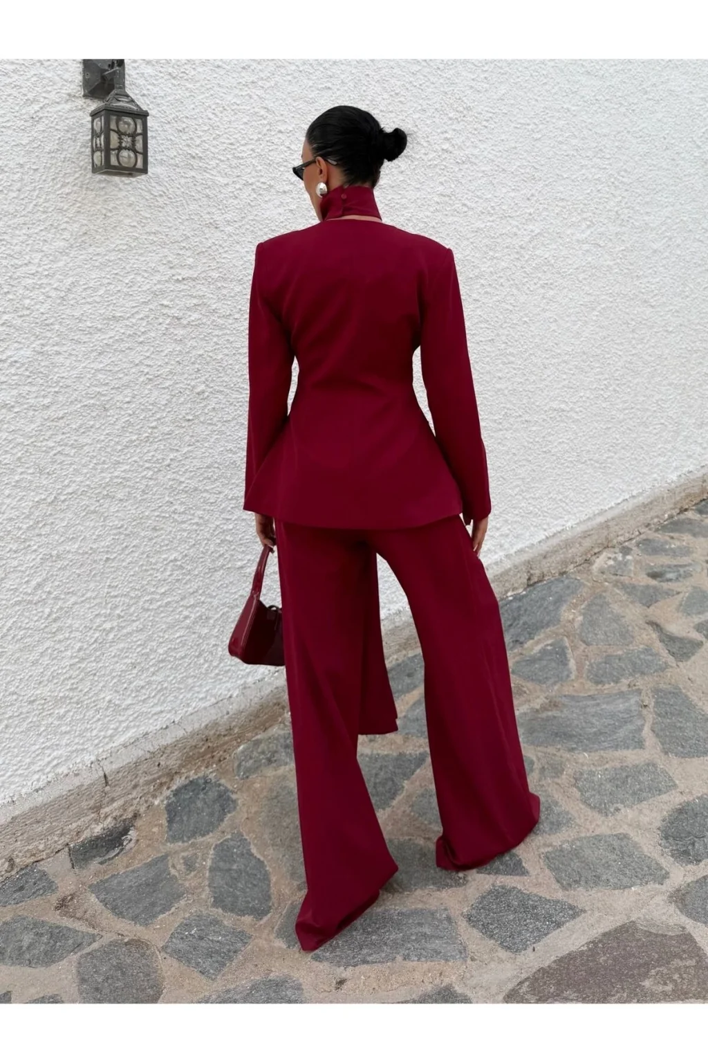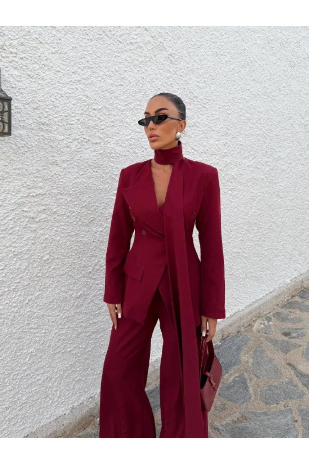 Ürün 3 parça Şal, Palazzo pantolon, Blazer ceketten oluşmaktadır.